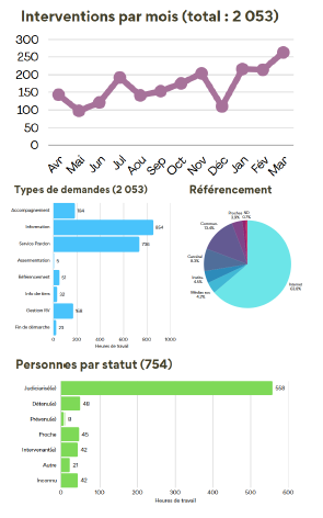 Comme tous les organismes communautaires, Alter Justice doit rendre des comptes à ses membres et ses subventionneurs. Dans une logique de transparence, on te présente quelques statistiques intéressantes pour la période du 1er avril 2024 au 31 mars 2025. Pour un rapport plus complet, tu n’as qu’à te connecter à la section membre d’AJ!